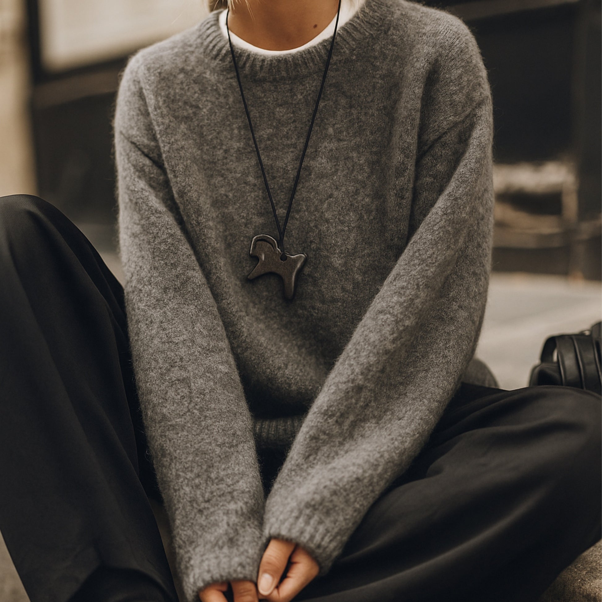A minimalist ceramic pendant in the shape of a horse in ethnic style is a sophisticated and elegant decoration that attracts attention with its simplicity.